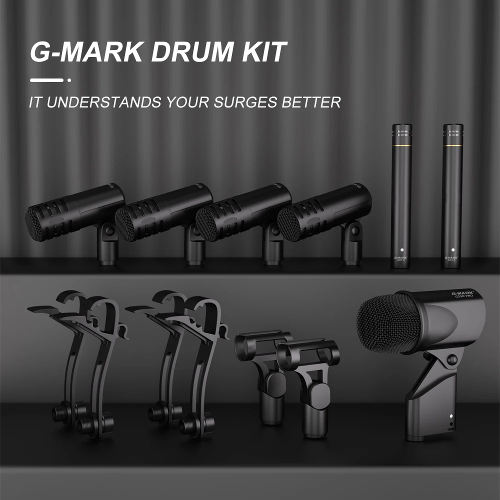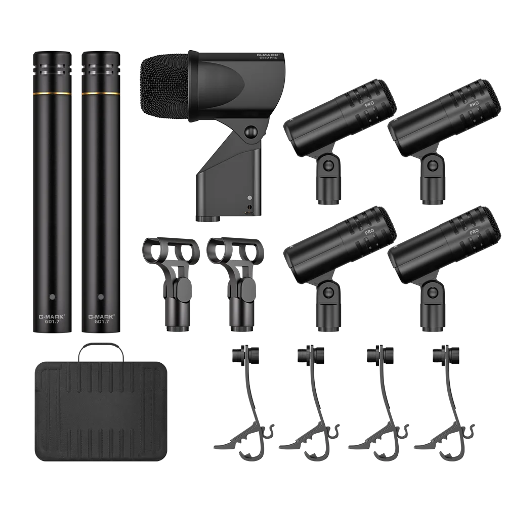 The G-MARK GD1.7 Drum Microphone Kit is a complete set of professional instrument microphones designed for live performances, studio recordings, and rehearsals. Built to capture the full range of drum sounds with clarity and precision, this set is ideal for musicians, sound engineers, and producers. The durable construction and high-quality audio make it a reliable choice for drummers and performers.