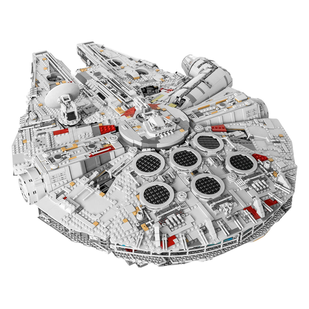 Take on the ultimate Star Wars building challenge with this massive Millennium Falcon set, a detailed replica of Han Solo’s legendary Corellian freighter. With over 7,500 pieces, this model is packed with authentic features including rotating quad laser turrets, a boarding ramp, and removable panels that reveal the interior cabins and gunnery station.